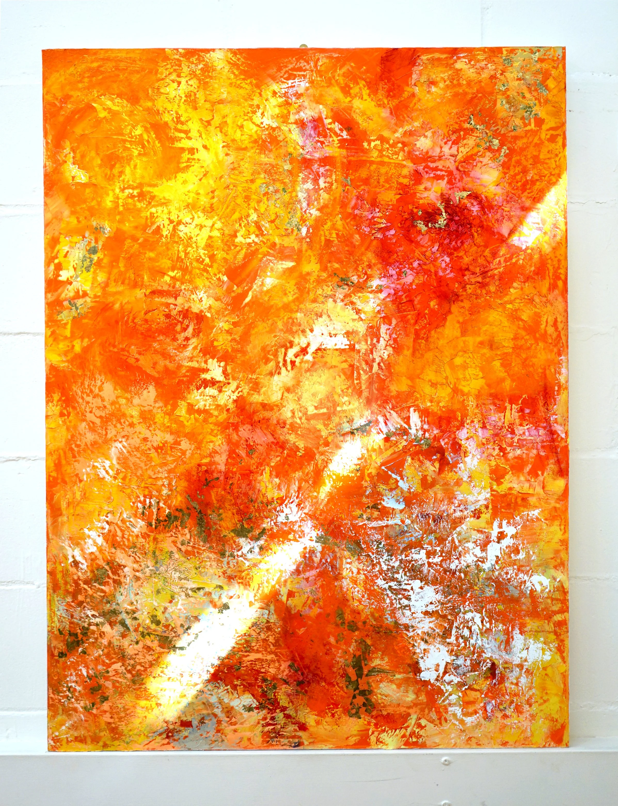 Each mark responds to and reshapes the one before it, creating a delicate rhythm of colour, form and movement. Dynamic colour relationships and energetic application generate a visual pulse that feels at once meditative and charged.